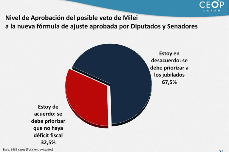 La paciencia parece acabarse. Una enorme mayoría, dos de cada tres argentinos, está en desacuerdo con el veto a la nueva fórmula previsional y sostiene que se debe priorizar a los jubilados, no el déficit fiscal cero.