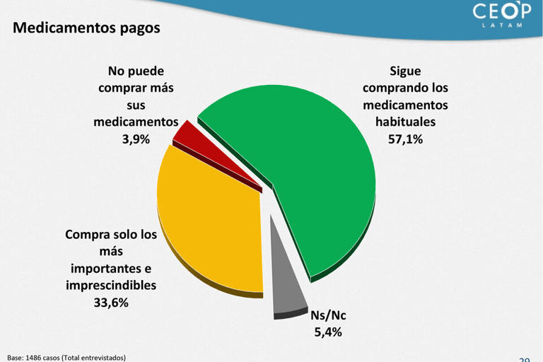 El azote no sólo golpea a unas jubilaciones y pensiones bajísimas, que sufrieron el recorte del 8,1 por ciento que la ley pretende devolverles, sino que el ajuste pega también en los medicamentos. Uno de cada tres consultados (33,6 por ciento) sostuvo que compra solo los medicamentos más importantes e imprescindibles y hay un cuatro por ciento que directamente no puede comprar más medicamentos. Está claro que es una decisión más que difícil, porque la salud es prioridad en todas las familias.