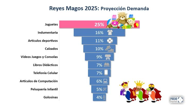 “Las ventas por Reyes Magos están dirigidas exclusivamente a los niños, manteniendo su relevancia como una fecha tradicional de entrega de regalos en Argentina. Los juguetes, la indumentaria y los artículos deportivos destacan como los rubros con mayor proyección de demanda. El gasto promedio estimado por regalo alcanza los $47.460”, explicó Damián Di Pace, Director de la Consultora Focus Market.