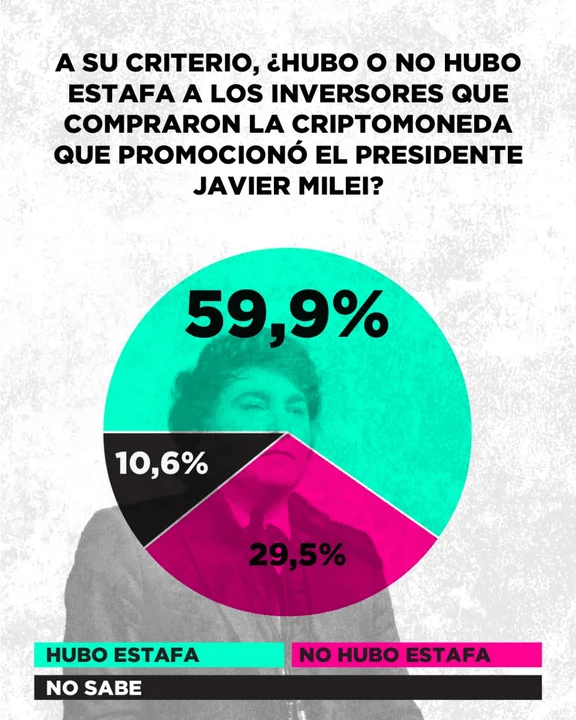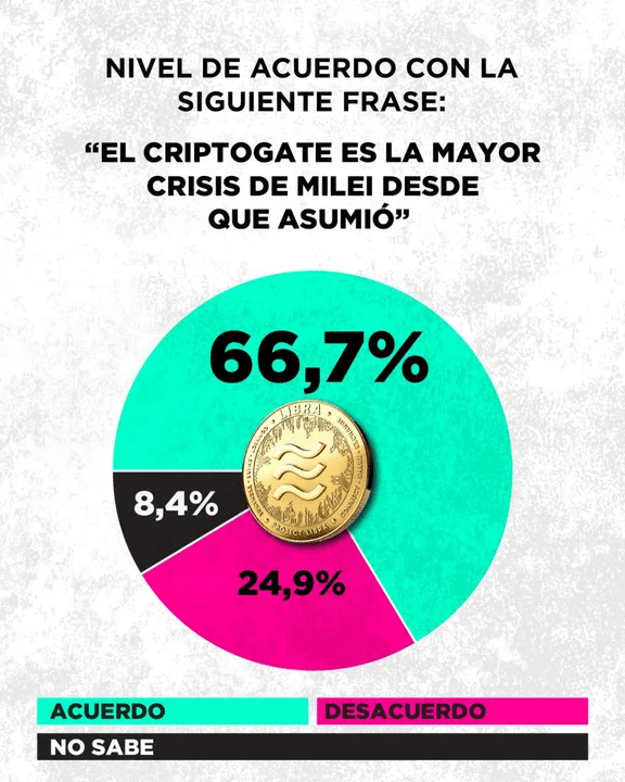 En las últimas horas se difundieron mensajes de Haylen Davis, creador de $LIBRA, en los cuales reconocía haber pagado dinero a Karina Milei para “controlar” a su hermano: “Le envío dinero a su hermana y él (Milei) firma lo que yo quiero”, decía el extracto que salió a la luz. La encuesta demuestra que el presidente no es el único salpicado por el escándalo.