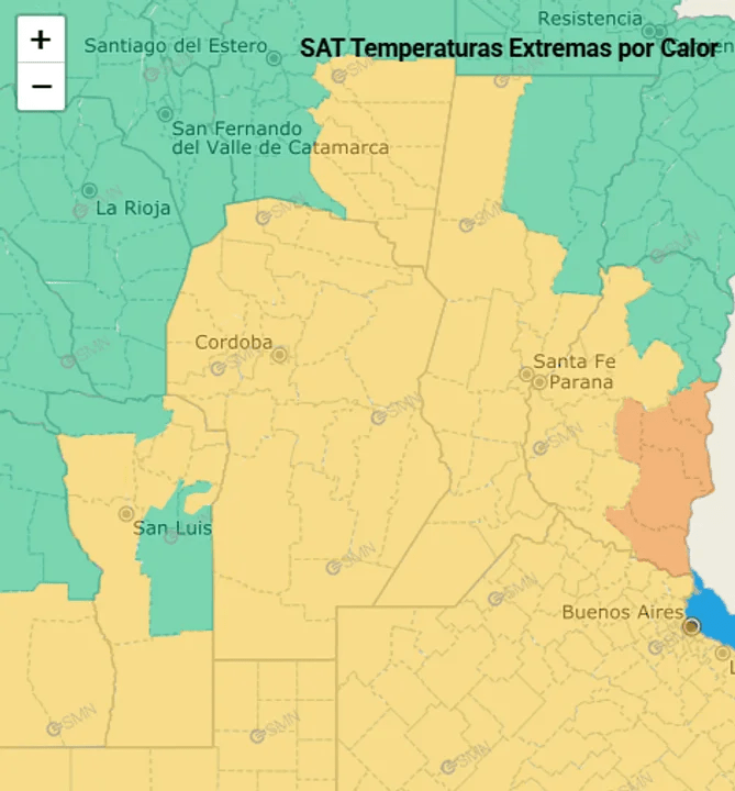 Toda la provincia se encuentra incluida, en tal sentido, en un “alerta amarillo” por temperaturas extremas.