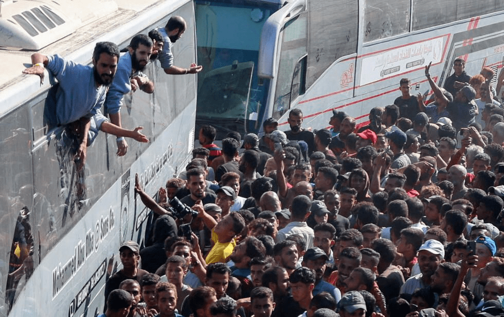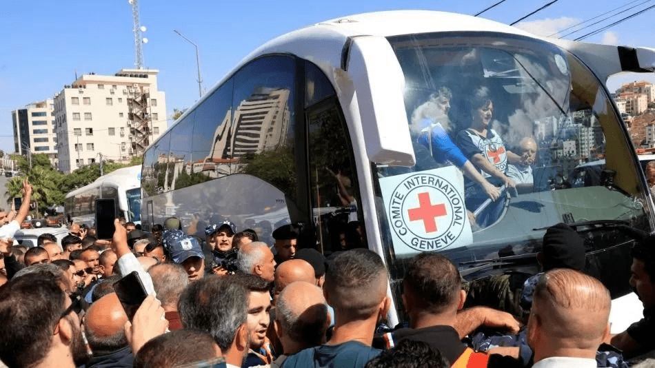 Los prisioneros, que estuvieron en Gaza durante más de dos años, fueron entregados a la Cruz Roja antes de ser transferidos a las fuerzas israelíes en Gaza.
